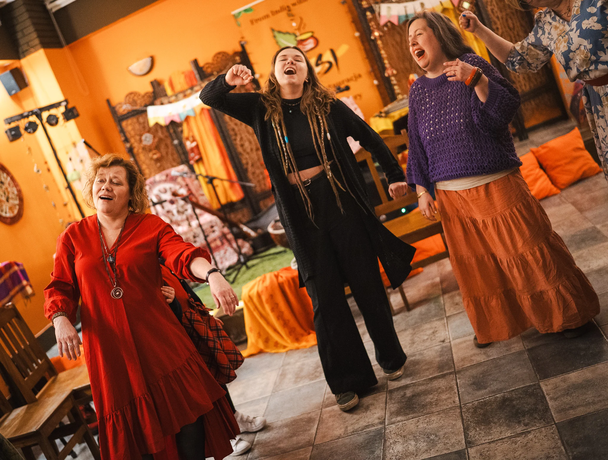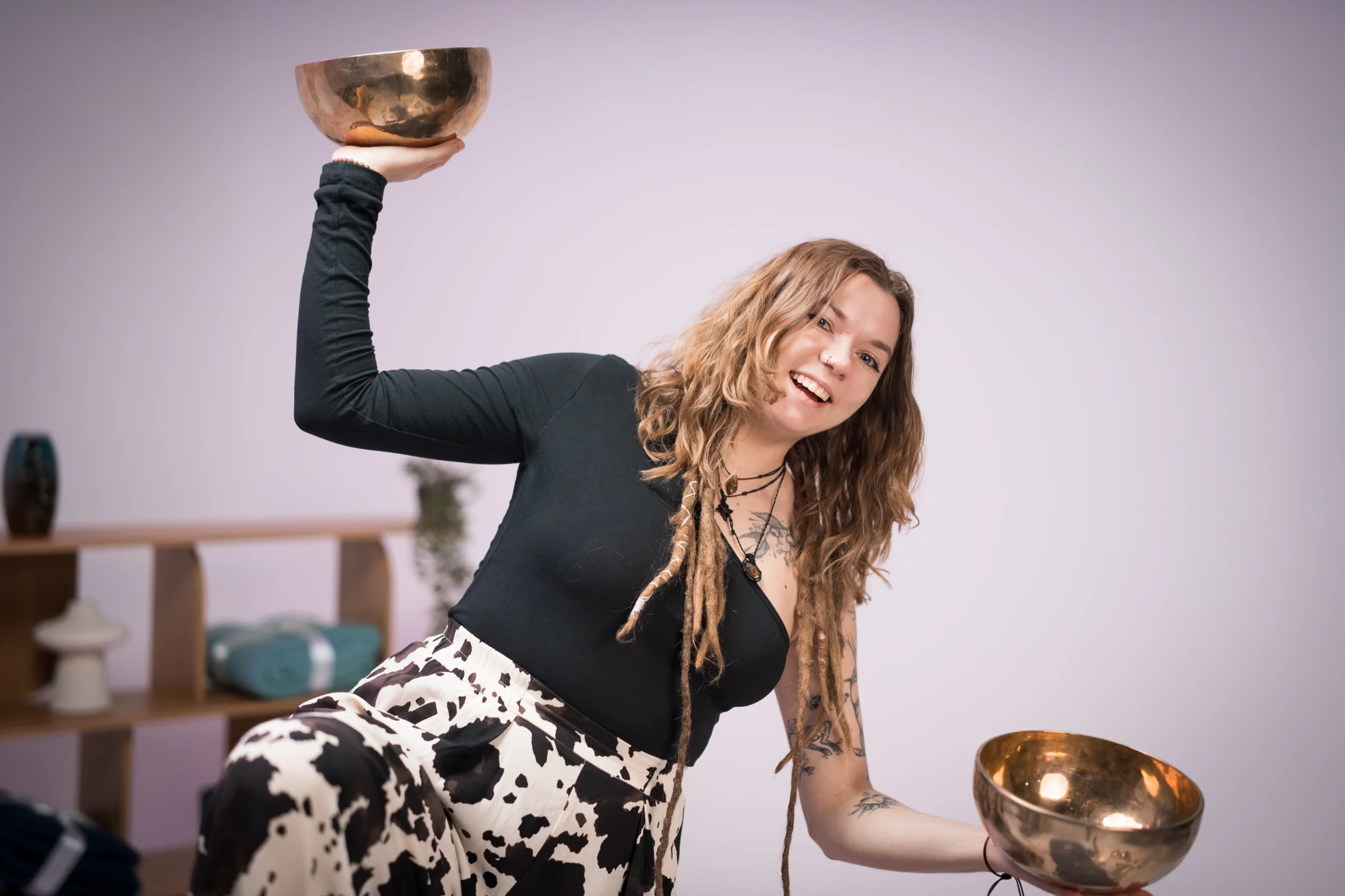 Nie musisz “oczyszczać umysłu” na siłę. Moja metoda opiera się na fizjologii: najpierw solidnie męczymy ciało śmiechem (to konkretny trening cardio!), co pozwala naturalnie wyłączyć natłok myśli i obudzić wyobraźnię. Dopiero wtedy, gdy napięcie opada, wchodzimy w głęboką relaksację przy użyciu profesjonalnych instrumentów – gongów i mis tybetańskich. To holistyczne podejście, które łączy twardą naukę z uważnością. Niezależnie od tego, czy szukasz duchowości, czy po prostu chcesz uciszyć stres biochemią – tutaj znajdziesz skuteczne narzędzia i bezpieczną przestrzeń.