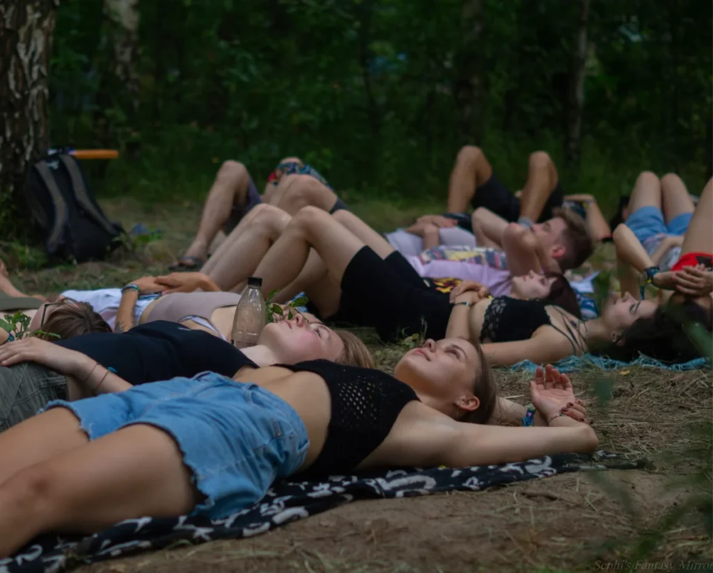 Śmiech + Dźwięk: Idealna harmonia ognia i wody. Najpierw wyrzucamy z siebie stres poprzez aktywną radość, by po chwili z czystą głową zanurzyć się w kojącej, regenerującej ciszy.