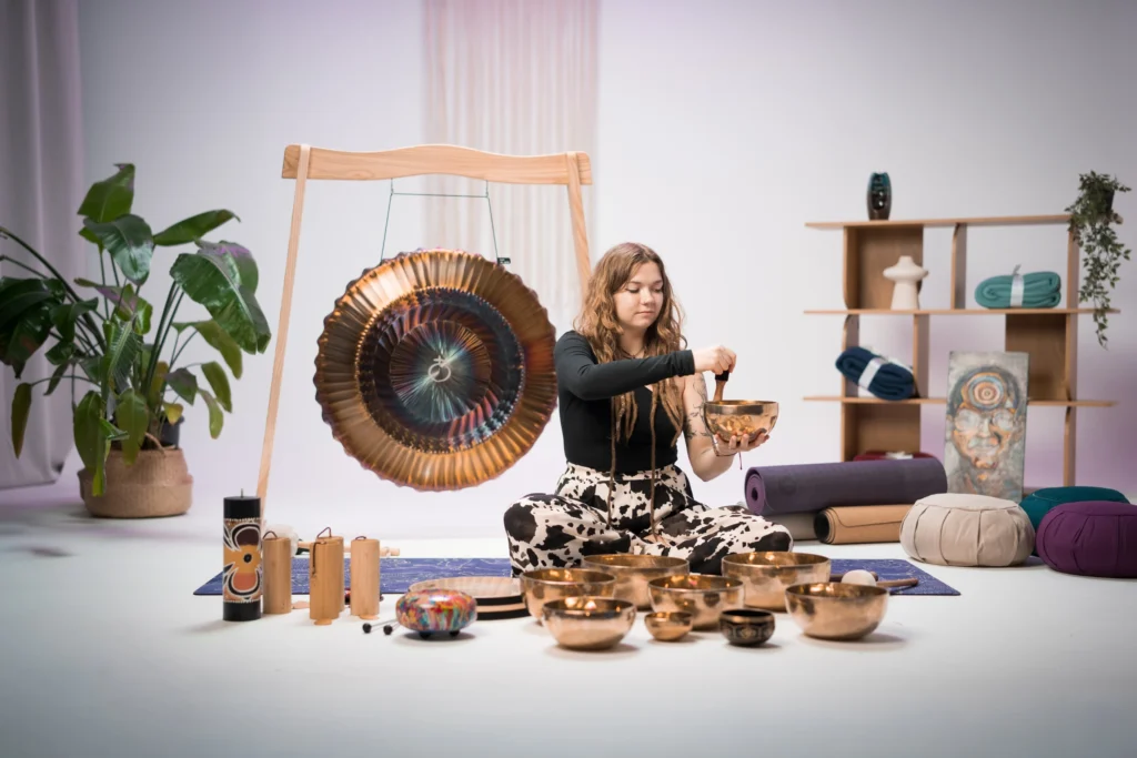 Podczas sesji leżysz lub siedzisz na macie – wybierasz pozycję, w której jest Ci najwygodniej – a przestrzeń wypełnia się rezonującym brzmieniem mis tybetańskich, gongów i dzwonków. Ponieważ Twoje ciało składa się w około 70% z wody, wibracje te przenikają głęboko do każdej komórki, działając jak precyzyjny mikromasaż od wewnątrz.